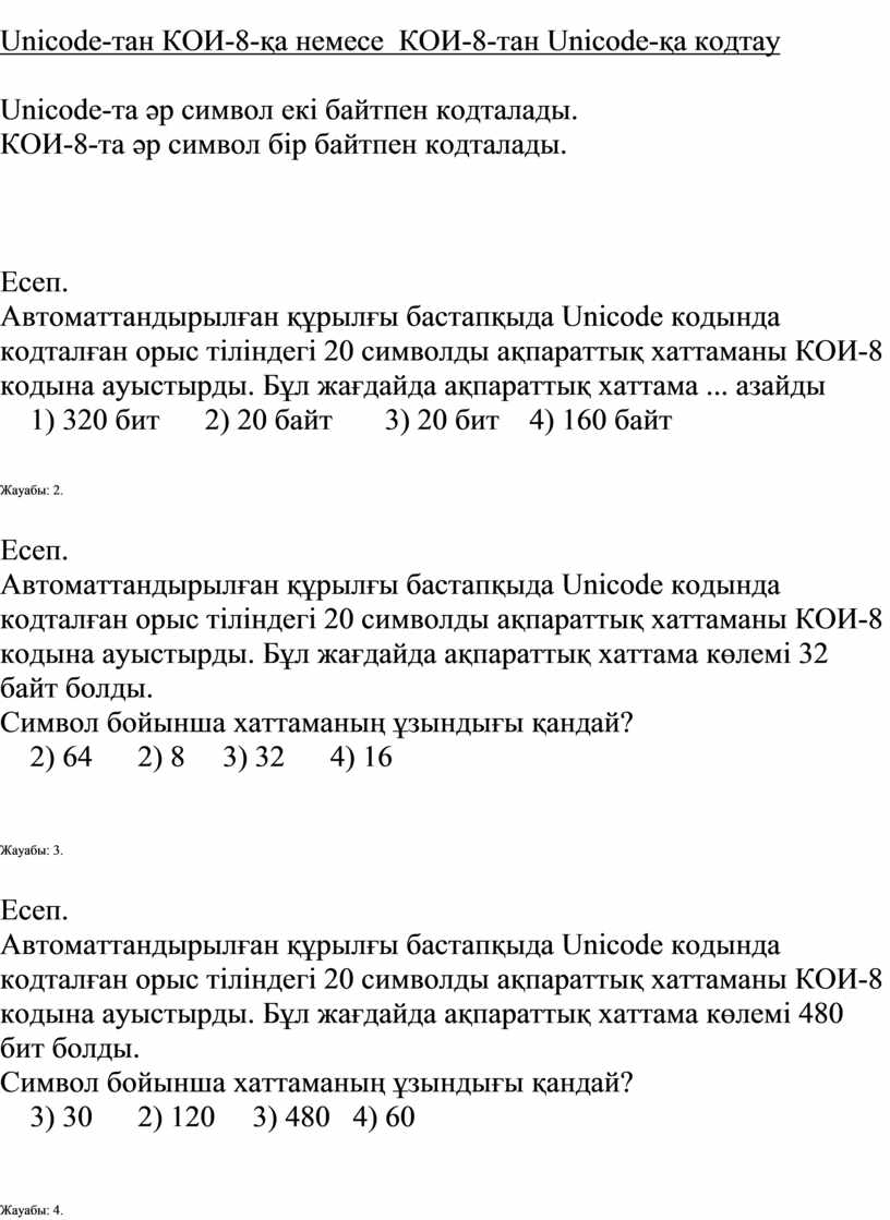 Автоматтандырылған құрылғы бастапқыда Unicode кодында кодталған орыс тіліндегі 20 символды ақпараттық хаттаманы КОИ-8 кодына ауыстырды. Бұл жағдайда ақпараттық хаттама ... азайды