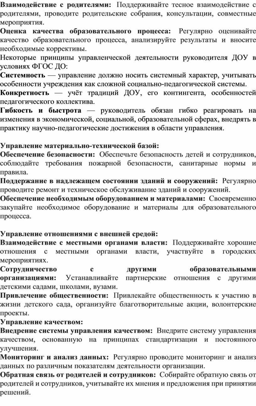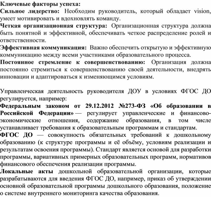 Управленческая деятельность руководителя дошкольного образовательного учреждения (ДОУ) в условиях Федерального государственного образовательного стандарта дошкольного образования (ФГОС ДО)