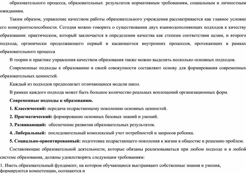 В теории и практике управления качеством образования также можно выделить несколько основных подходов.