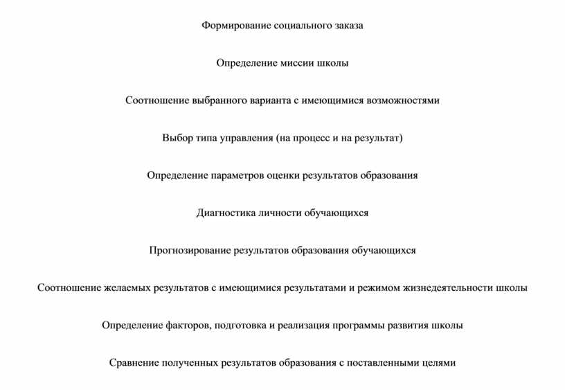 Школа создана и существует исключительно в интересах заказчиков и потребителей образовательных услуг, и поэтому должна понимать их текущие и будущие потребности и запросы, выполнять их требования и стремиться превзойти их ожидания. Поэтому важной стороной деятельности системы образования является институционализация консолидированного заказа (запроса) на образование, а школа должна быть крайне заинтересована в формировании и исполнении такого заказа (запроса).