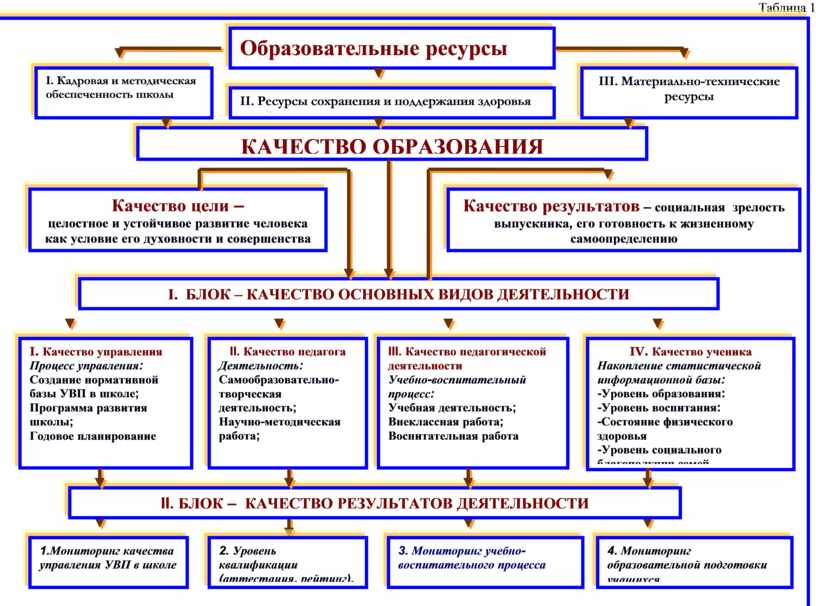 В обобщенном виде качество образования можно представить в виде двух основных блоков (Таблица 1):