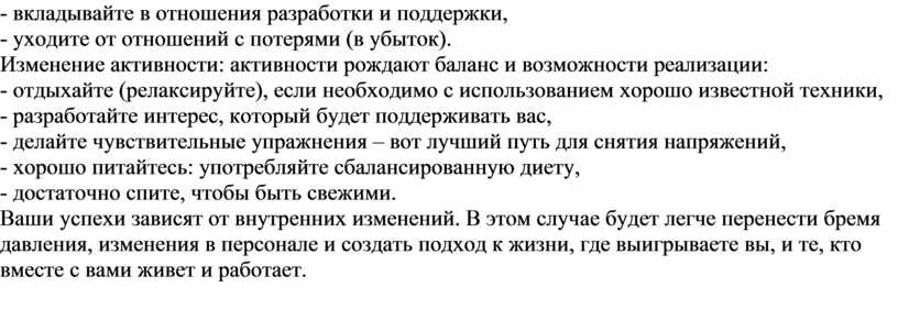 перенести бремя давления, изменения в персонале и создать подход к жизни, где