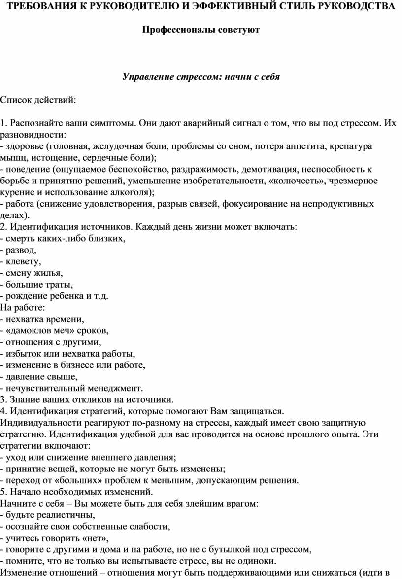 ТРЕБОВАНИЯ К РУКОВОДИТЕЛЮ И ЭФФЕКТИВНЫЙ СТИЛЬ РУКОВОДСТВА
