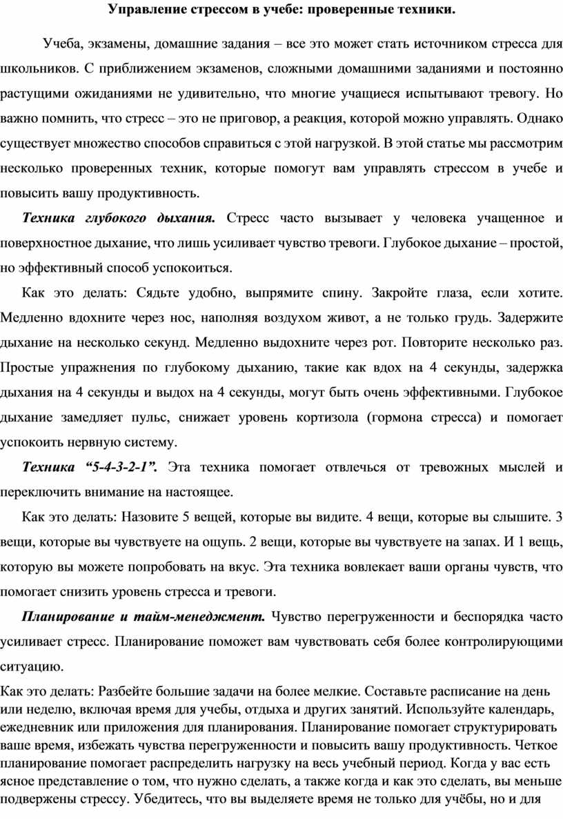 Используйте эти простые техники и помните, что вы можете справиться с любыми трудностями. Удачи в учебе и будьте здоровы!