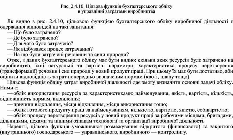 Як видно з рис. 2.4.10, цільовою функцією бухгалтерського обліку виробничої діяльності є одержання відповідей на такі запитання: