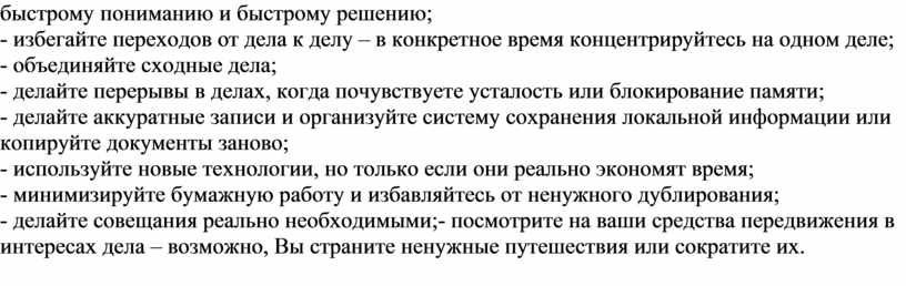 - избегайте переходов от дела к делу – в конкретное время концентрируйтесь