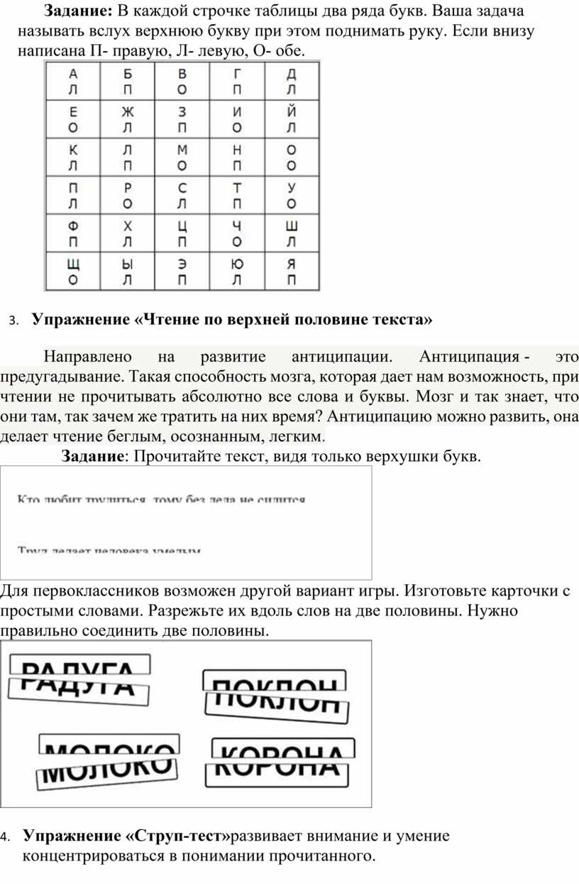 4. Упражнение «Струп-тест»развивает внимание и умение концентрироваться в понимании прочитанного.