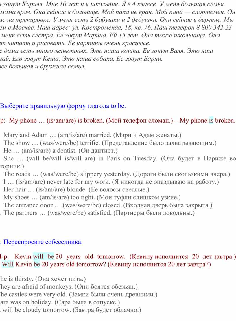 1. Выберите правильную форму глагола to be.