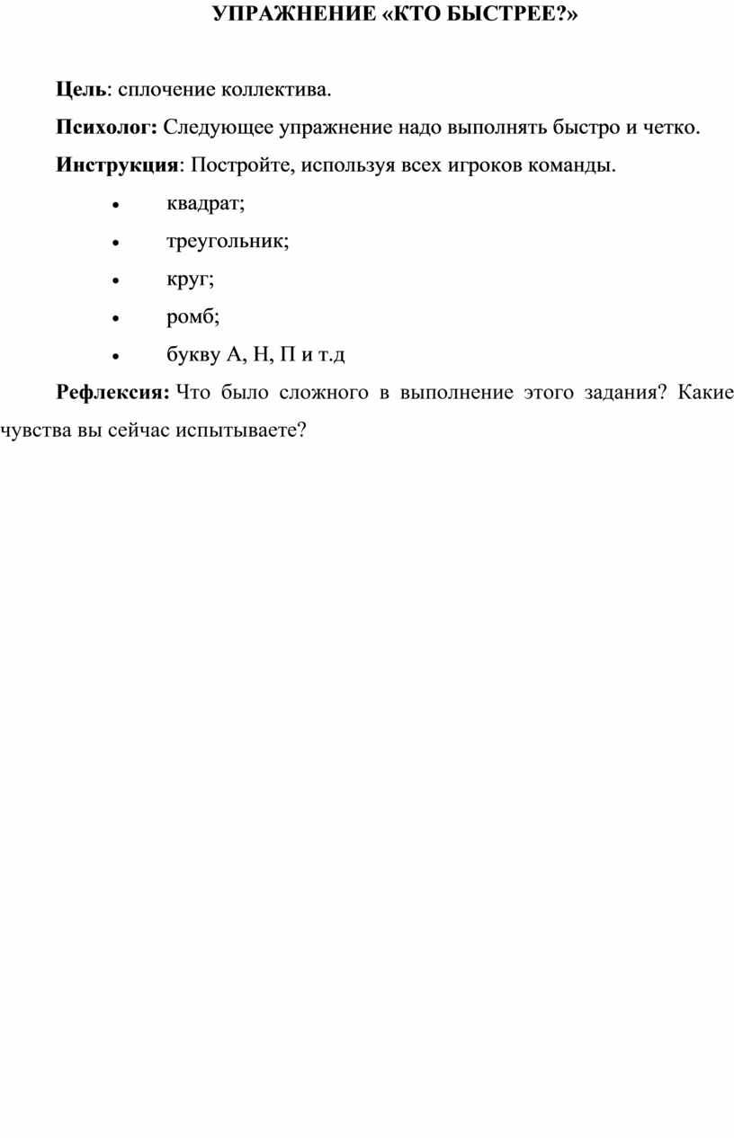 УПРАЖНЕНИЕ «КТО БЫСТРЕЕ?»