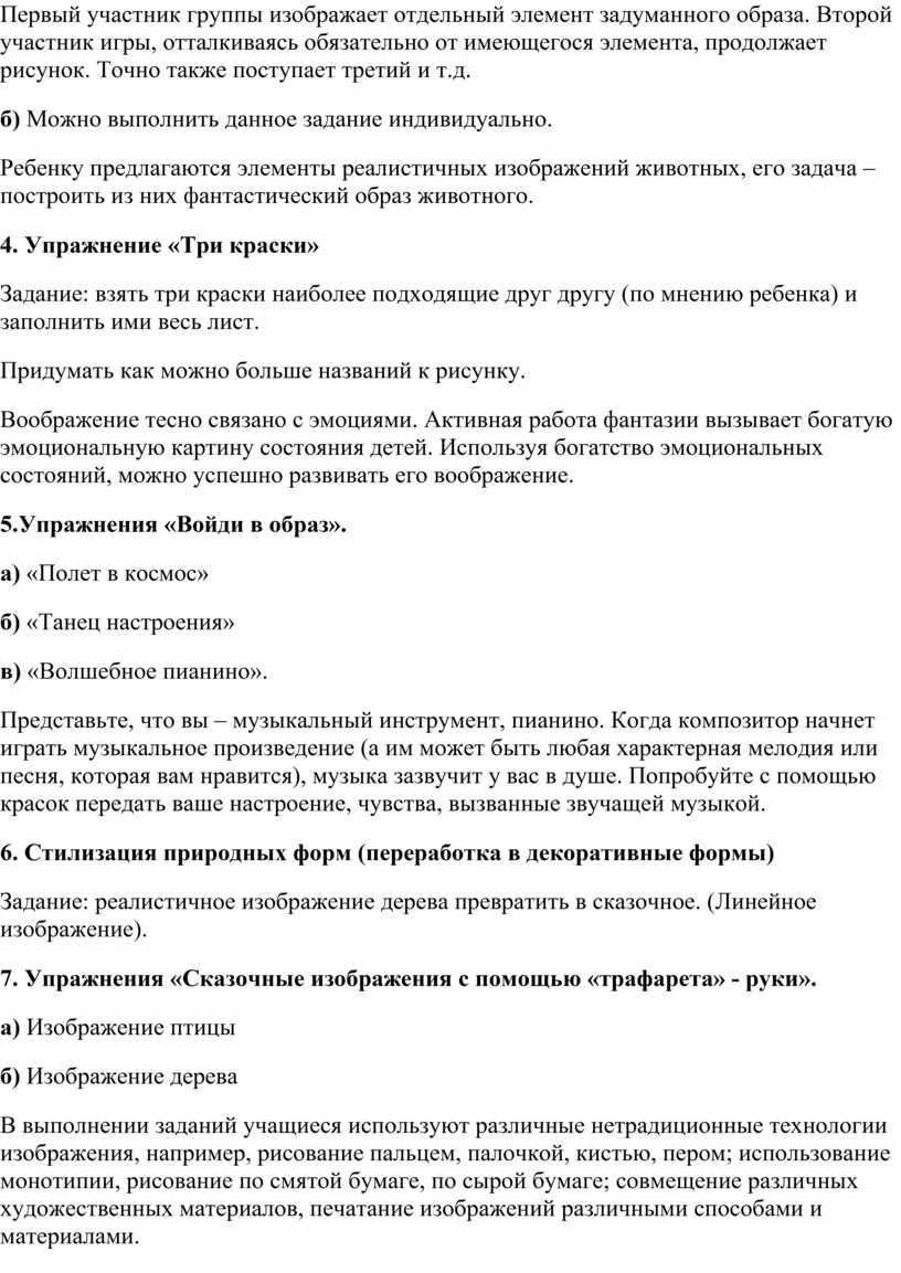 Предлагаю упражнения по развитию воображения, оригинальности мышления и индивидуальности каждого ребенка. Они могут предлагаться как часть занятия и как отдельные уроки.