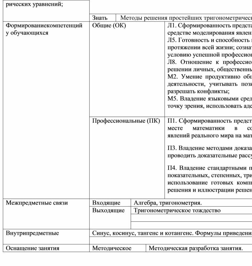 П1. Сформированность представлений о математике как части мировой культуры и месте математики в современной цивилизации, способах описания явлений реального мира на математическом языке; П3. Владение методами доказательств и алгоритмов решения, умение их применять, проводить доказательные рассуждения в ходе решения задач; П4. Владение стандартными приемами решения рациональных и иррациональных, показательных, степенных, тригонометрических уравнений и неравенств, их систем; использование готовых компьютерных программ, в том числе для поиска пути решения и иллюстрации решения уравнений и неравенств; |