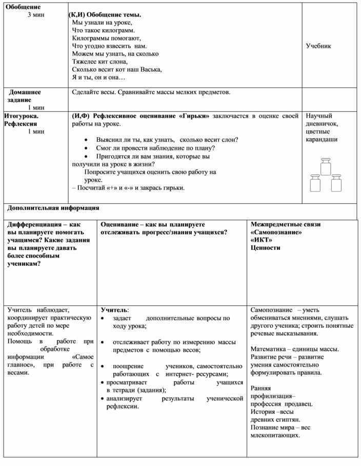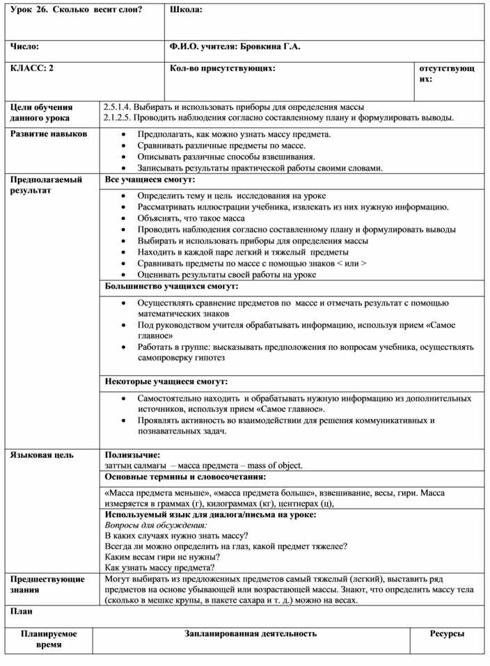 2.5.1.4. Выбирать и использовать приборы для определения массы 2.1.2.5. Проводить наблюдения согласно составленному плану и формулировать выводы. |