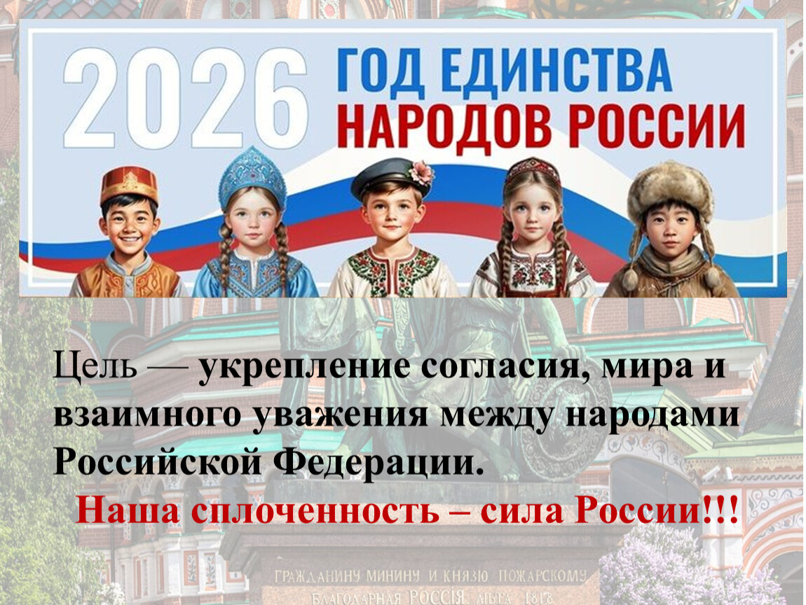 Цель — укрепление согласия, мира и взаимного уважения между народами Российской Федерации.
