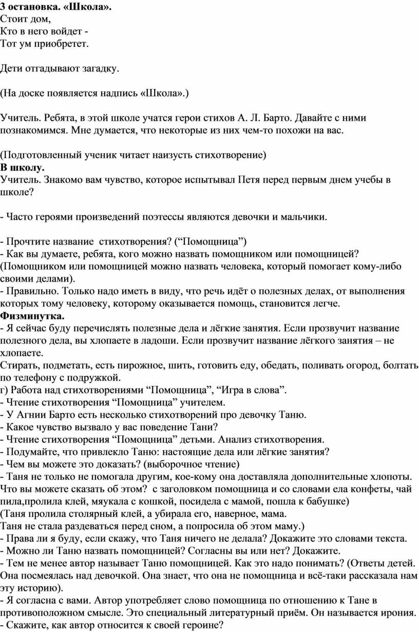 Учитель. Ребята, в этой школе учатся герои стихов А. Л. Барто. Давайте с ними