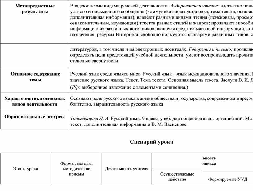 Тростенцова Л. А. Русский язык. 9 класс: учеб. для общеобразоват. организаций. М.: Просвещение, 2016*; текст; дополнительная информация о В. М. Васнецове |