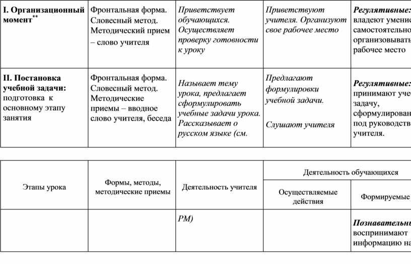 II. Постановка учебной задачи: подготовка к основному этапу занятия |