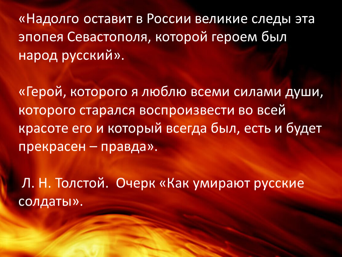 «Надолго оставит в России великие следы эта эпопея Севастополя, которой героем был народ русский».