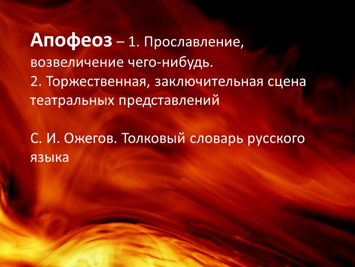 Апофеоз – 1. Прославление, возвеличение чего-нибудь.