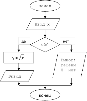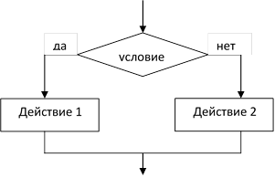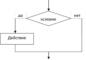 Разветвляющийся алгоритм – это алгоритм, содержащий хотя бы одно условие и обеспечивающий в зависимости от результата проверки условия (да или нет) выбор одного из альтернативных путей работы алгоритма. Каждый из путей ведет к общему выходу, так что работа алгоритма будет продолжаться независимо от того, какой путь будет выбран. Структура ветвления существует в двух вариантах: полная и неполная.