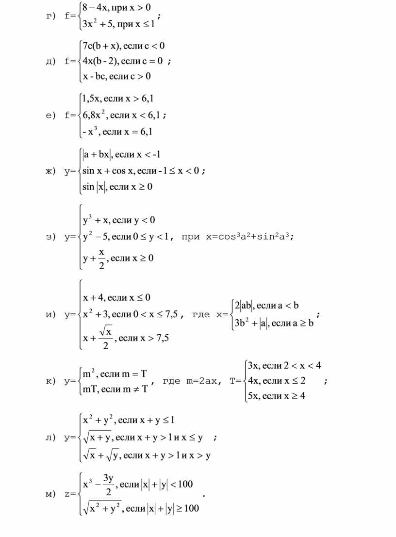 3. Составьте алгоритмы и программы для вычисления значения функции: