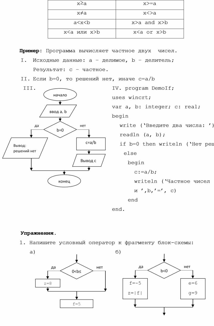 1. Напишите условный оператор к фрагменту блок-схемы:
