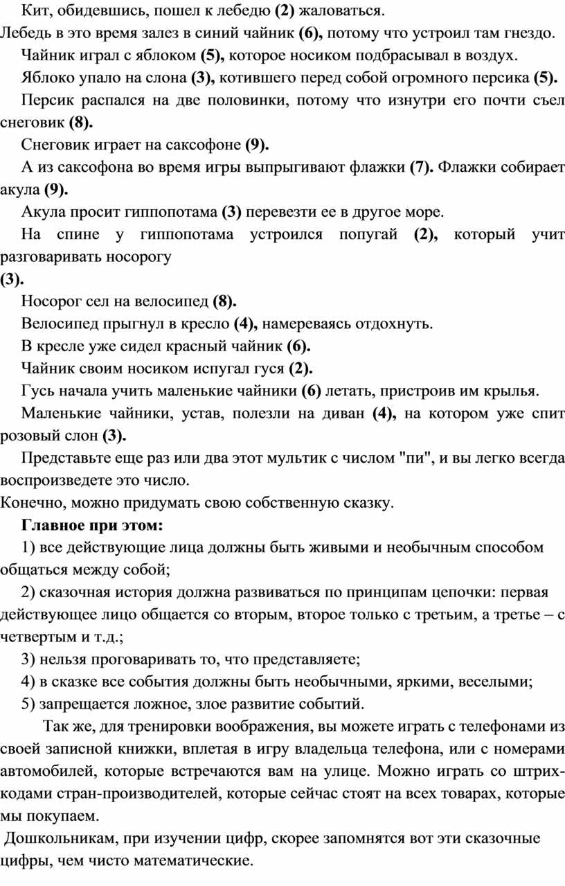 Сейчас поиграемся с числовым рядом, которым является числом "пи" до двадцать четвертой цифры после запятой, то есть представим мультфильм, героями которого будут придуманы образы цифр.
