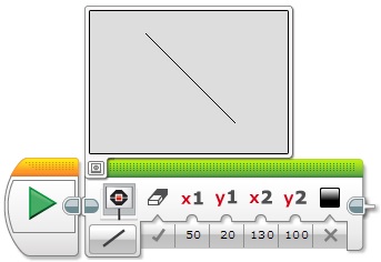 Программный блок "Экран" имеет четыре режима работы: режим "Текст" позволяет выводить текстовую строку на экран, режим "Фигуры" позволяет отображать на экране одну из четырех геометрических фигур (прямая, круг, прямоугольник, точка), режим "Изображение" может вывести на экран одно изображение. Изображение можно выбрать из богатой коллекции изображений или нарисовать свое, используя редактор изображений. Режим "Окно сброса настроек" сбрасывает экран модуля EV3 к стандартному информационному экрану, показываемому во время работы программы.