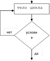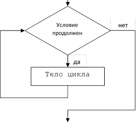 Перед каждым выполнением тела цикла вычисляется значение выражения условия. Если результат верен, тело цикла выполняется и снова вычисляется выражение условия. Если результат неверен, происходит выход из цикла и переход к следующему после цикла оператору.