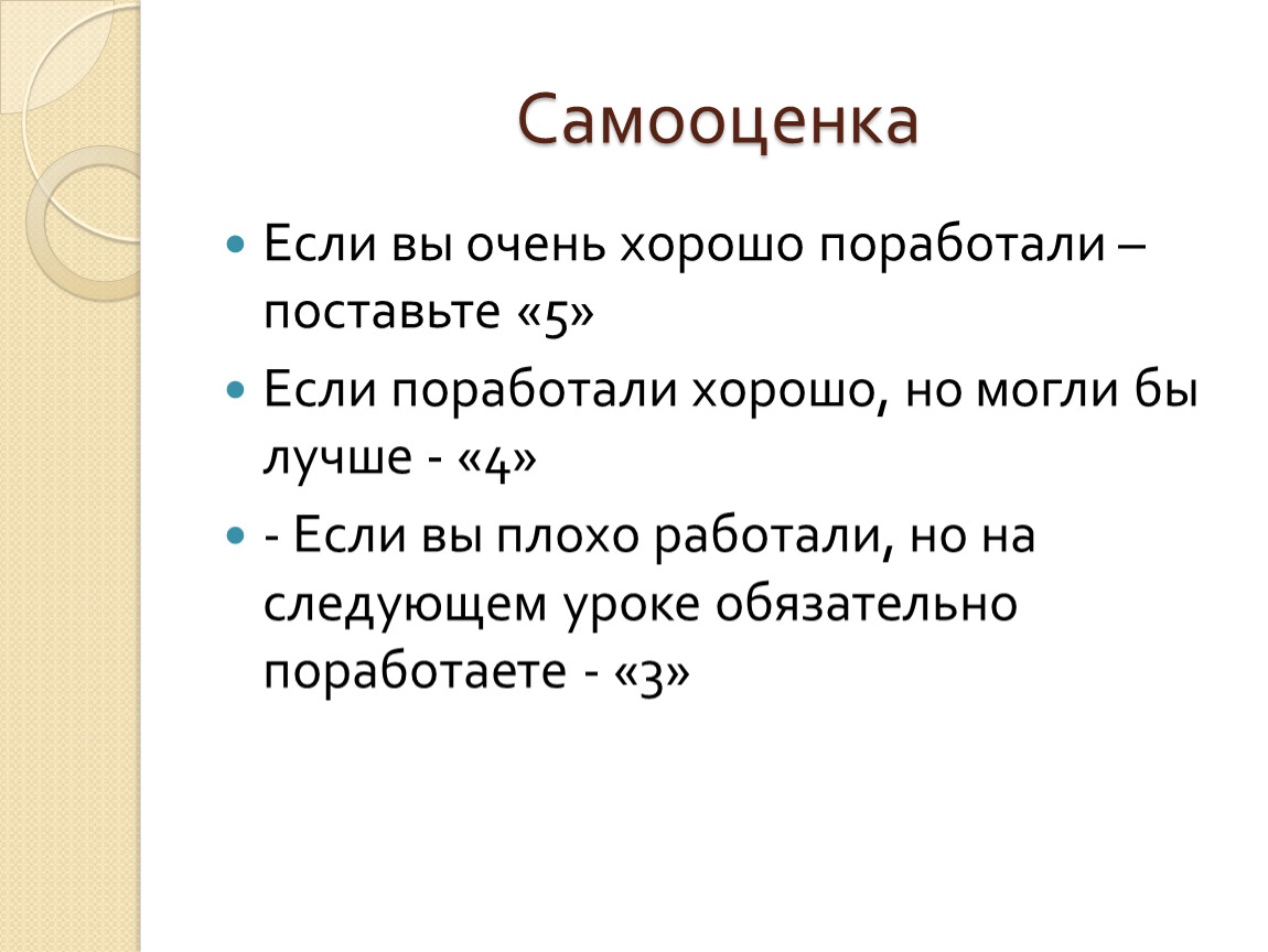 - Если вы плохо работали, но на следующем уроке обязательно поработаете - «3»