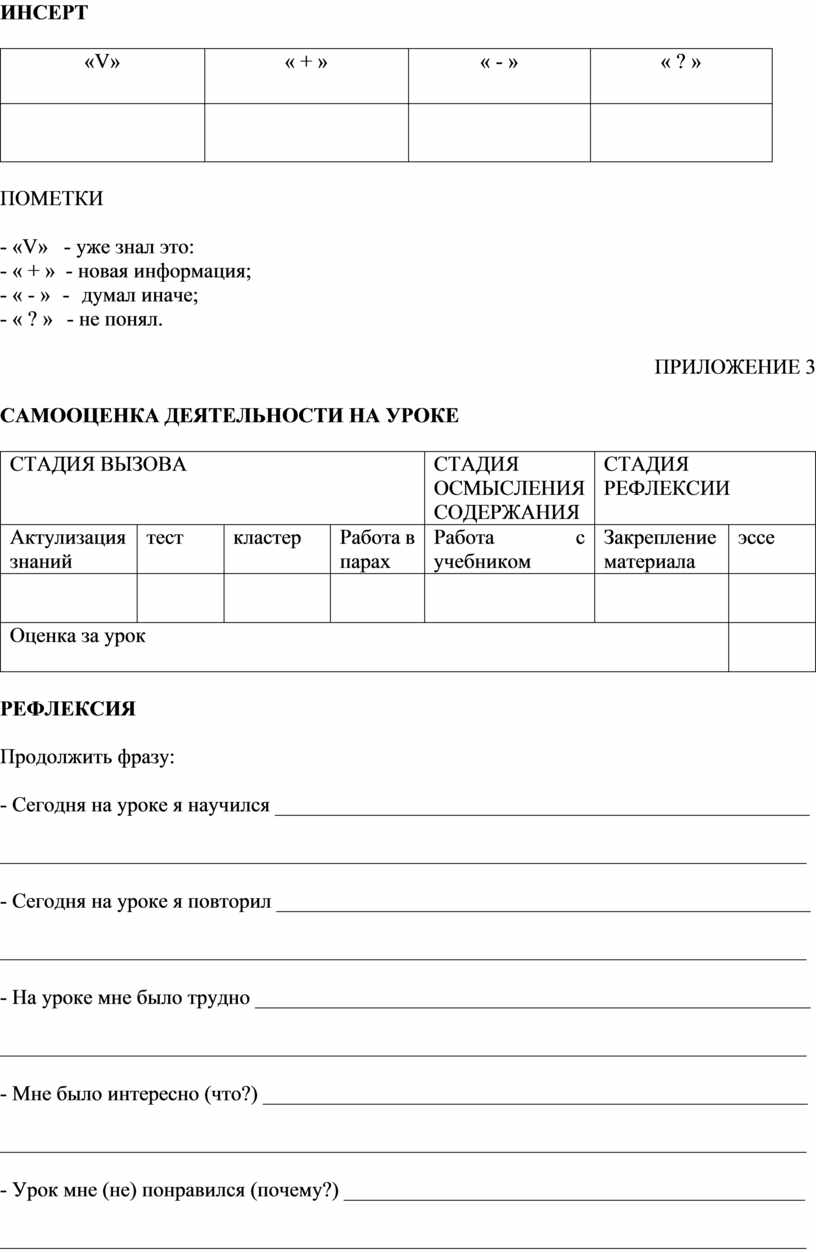 Продолжить фразу: - Сегодня на уроке я научился… - Сегодня на уроке я повторил… - Уроком я (не) доволен… ПРИЛОЖЕНИЕ 3 |
