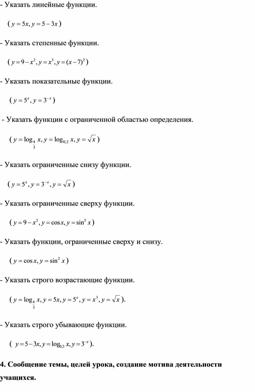 - Указать функции с ограниченной областью определения.