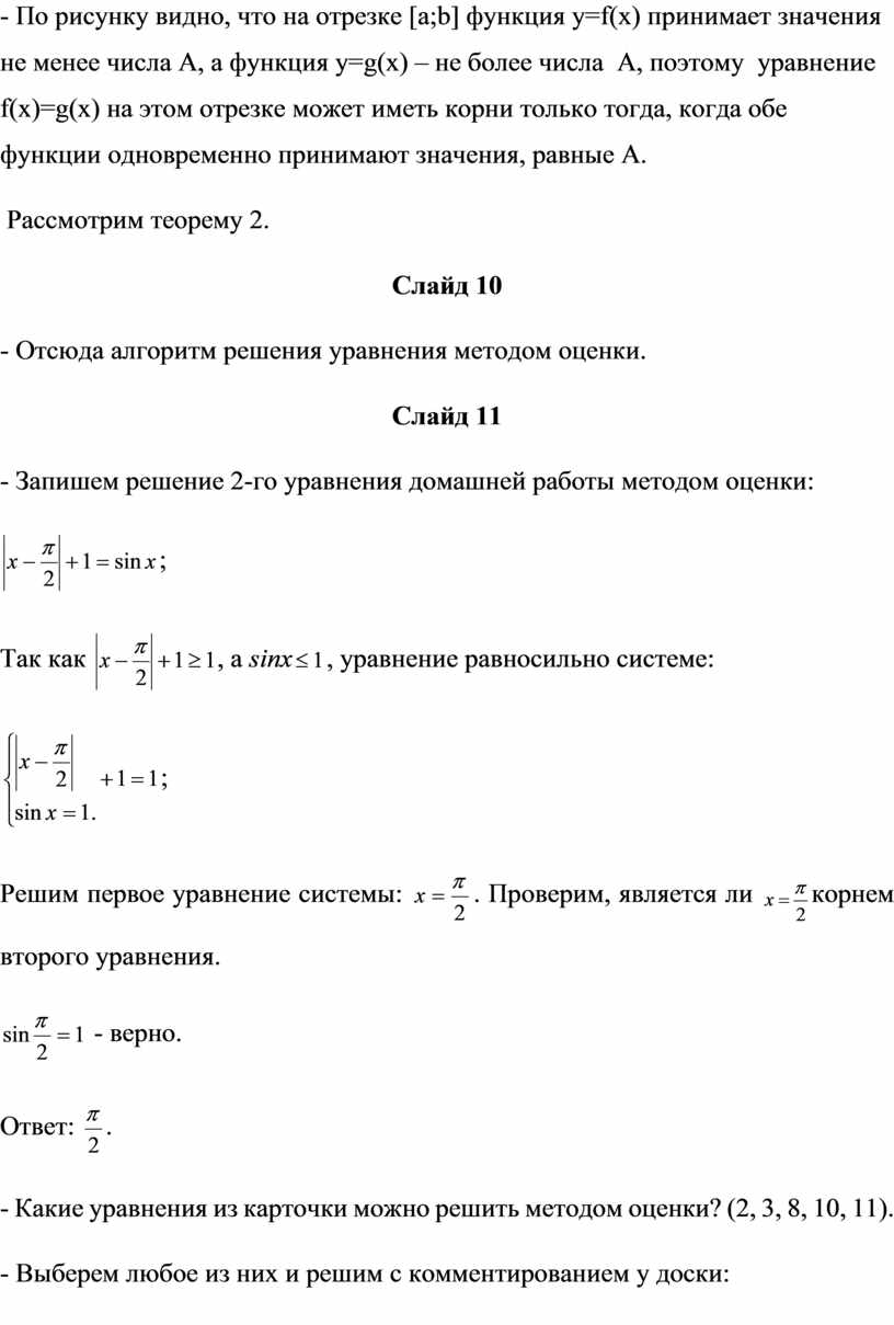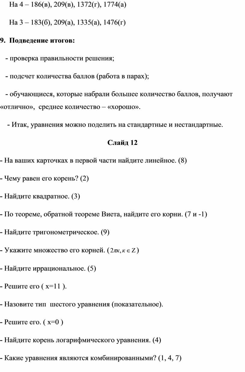 - Какие уравнения из карточки можно решить методом оценки? (2, 3, 8, 10, 11).