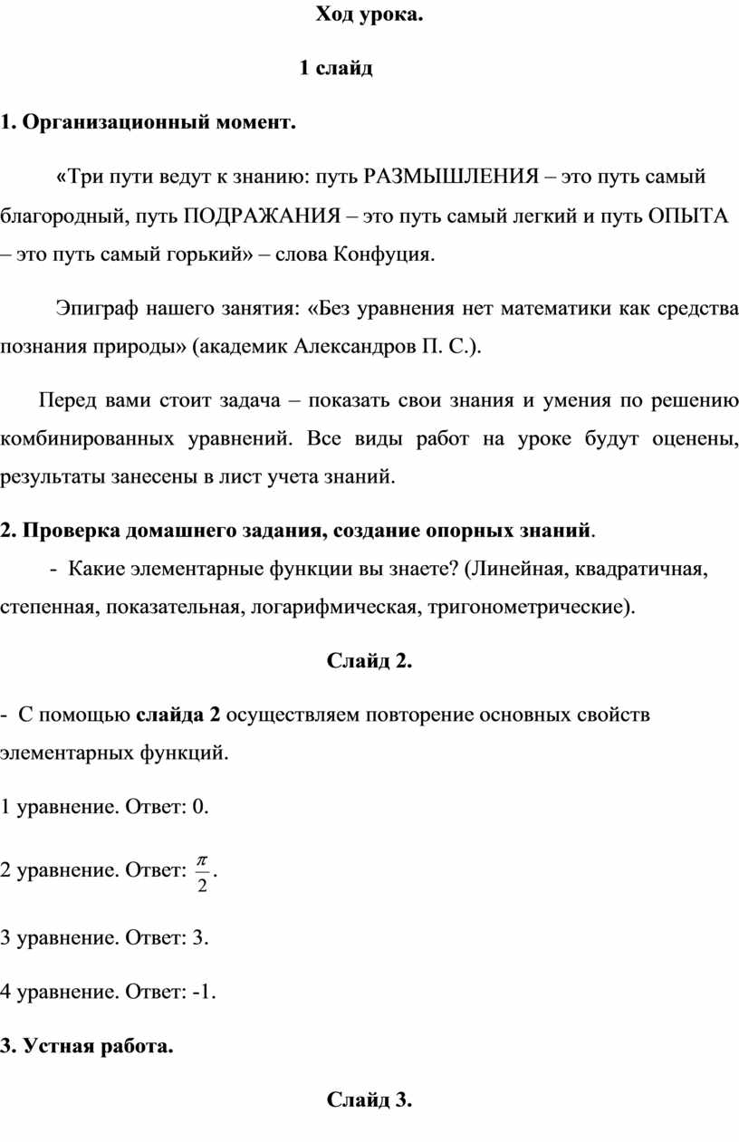 Эпиграф нашего занятия: «Без уравнения нет математики как средства познания природы» (академик Александров П. С.).