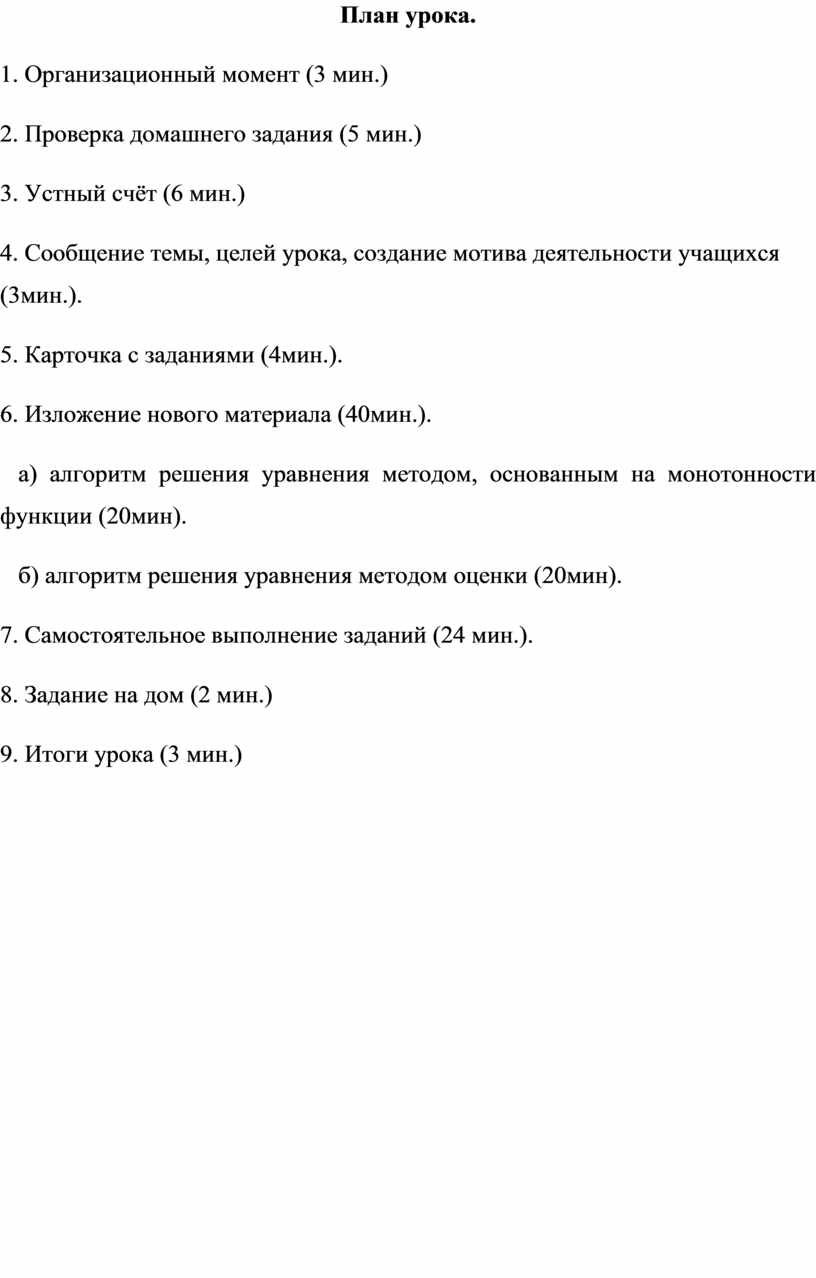 а) алгоритм решения уравнения методом, основанным на монотонности функции (20мин).