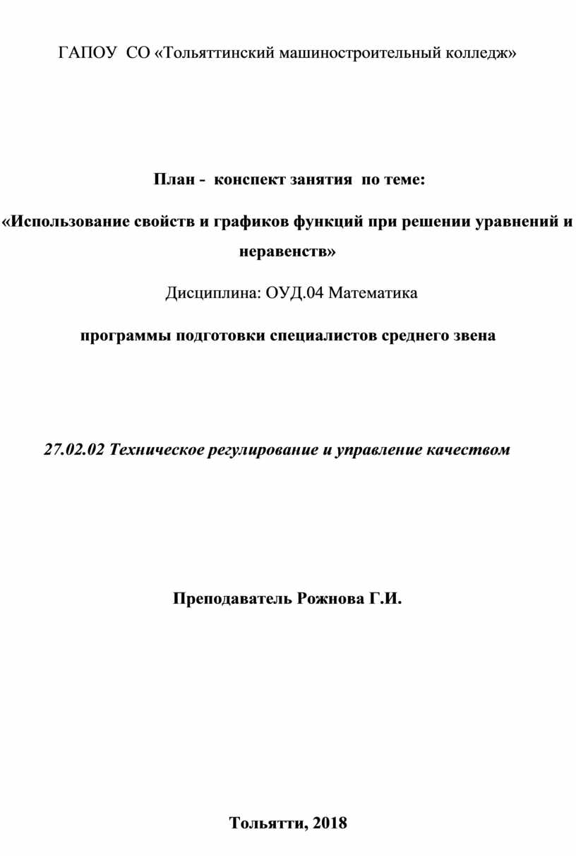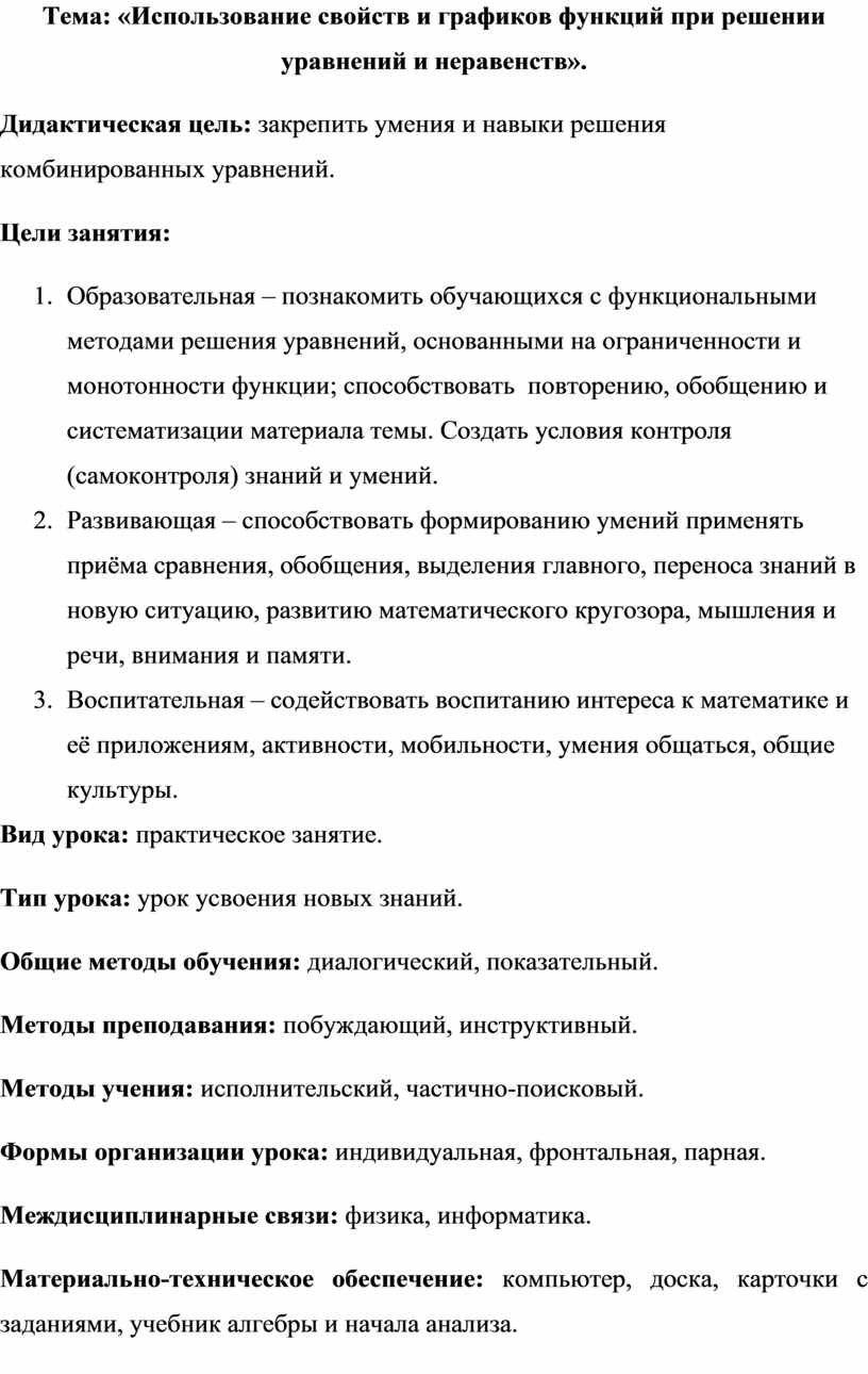 Тема: «Использование свойств и графиков функций при решении уравнений и неравенств».