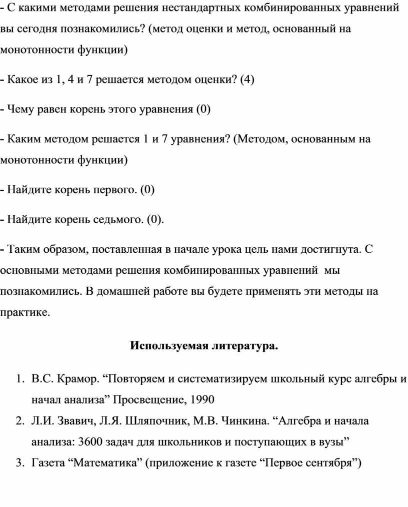 - С какими методами решения нестандартных комбинированных уравнений вы сегодня познакомились? (метод оценки и метод, основанный на монотонности функции)