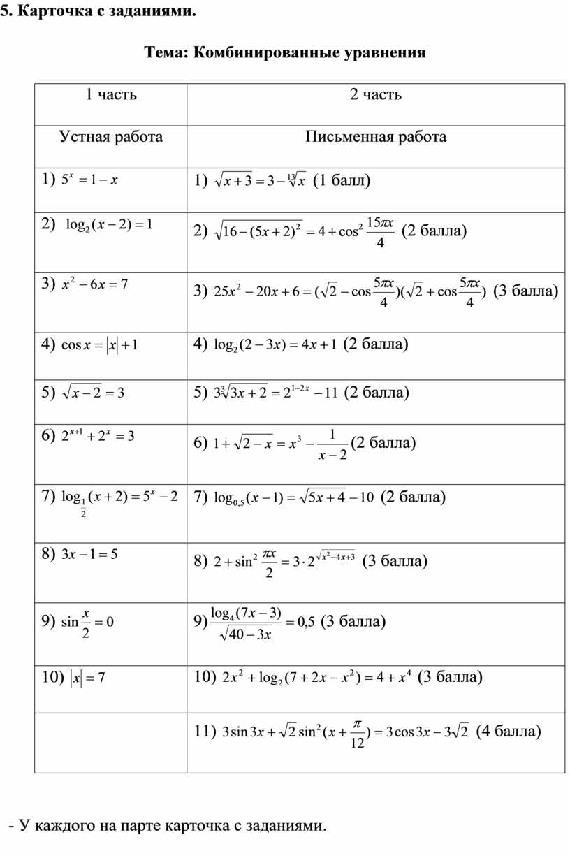 Тема: Комбинированные уравнения