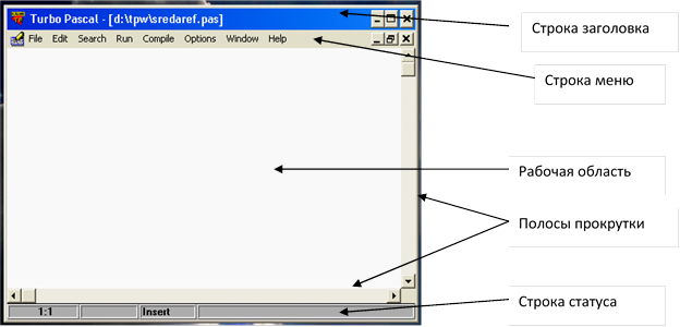 Упражнение. Загрузите TPascal for Windows, введите текст программы, откомпилируйте и проверьте ее действие.