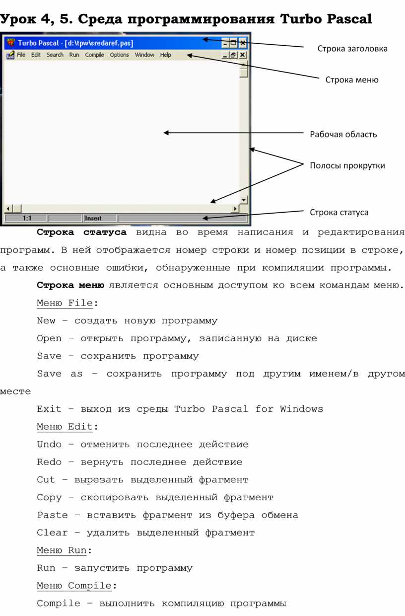 Урок 4, 5. Среда программирования Turbo Pascal