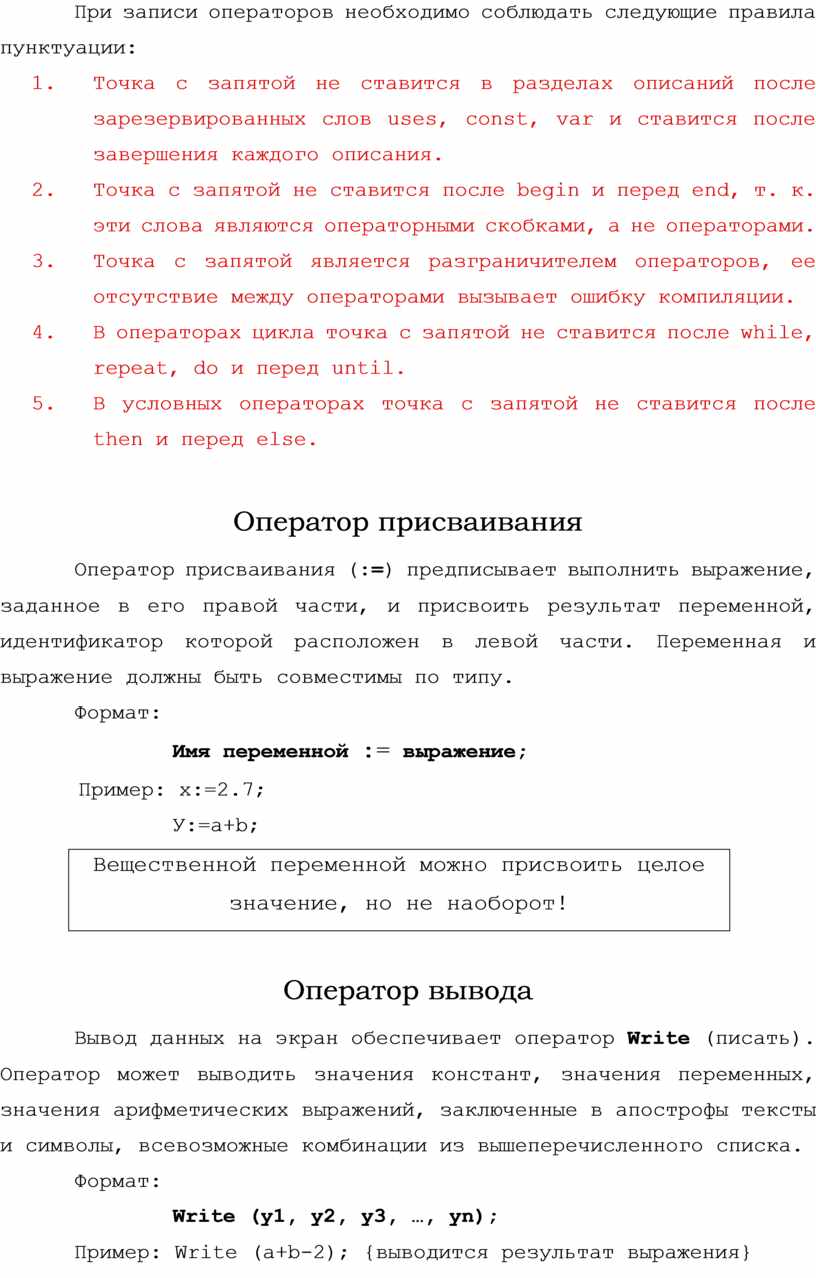 При записи операторов необходимо соблюдать следующие правила пунктуации: