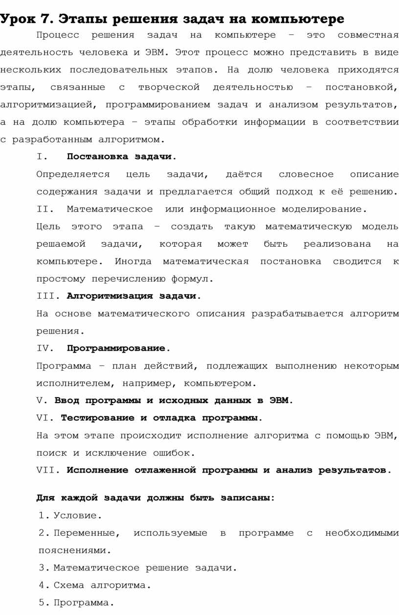 Урок 7. Этапы решения задач на компьютере