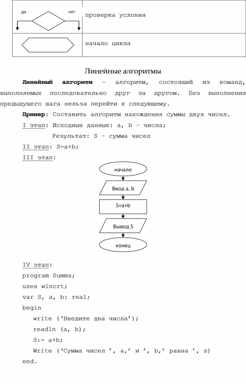 Пример: Составить алгоритм нахождения суммы двух чисел.