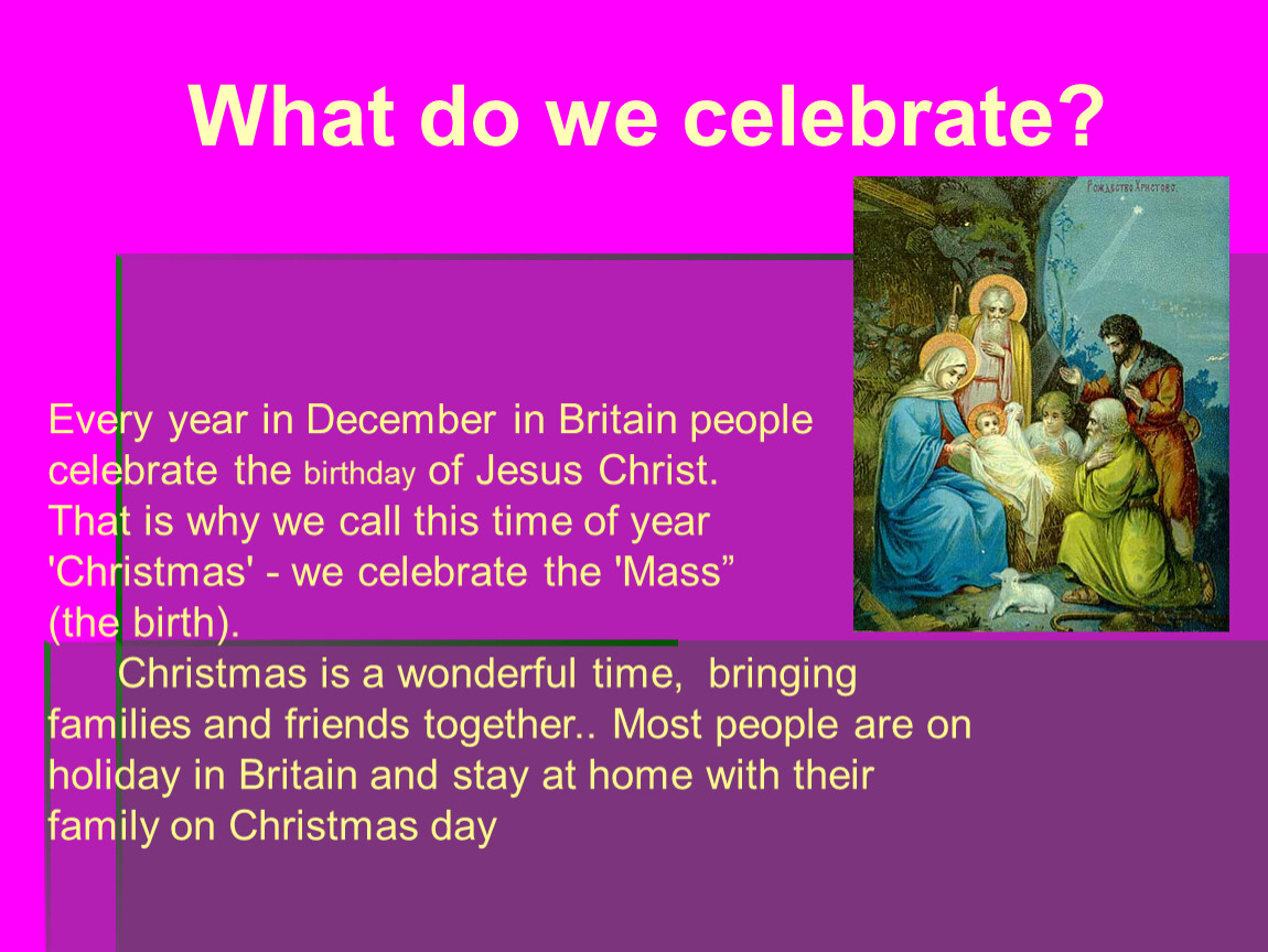 Every year in December in Britain people celebrate the birthday of Jesus Christ.