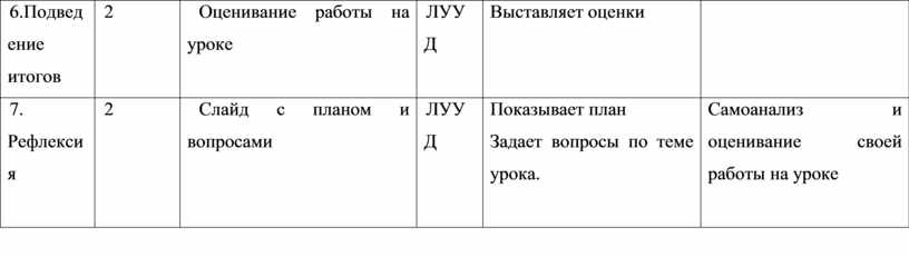 Самоанализ и оценивание своей работы на уроке |