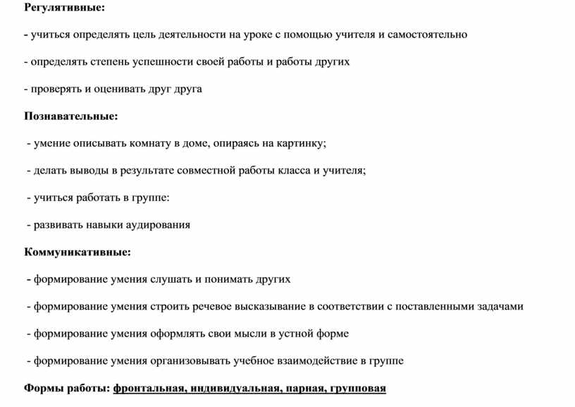 Формы работы: фронтальная, индивидуальная, парная, групповая