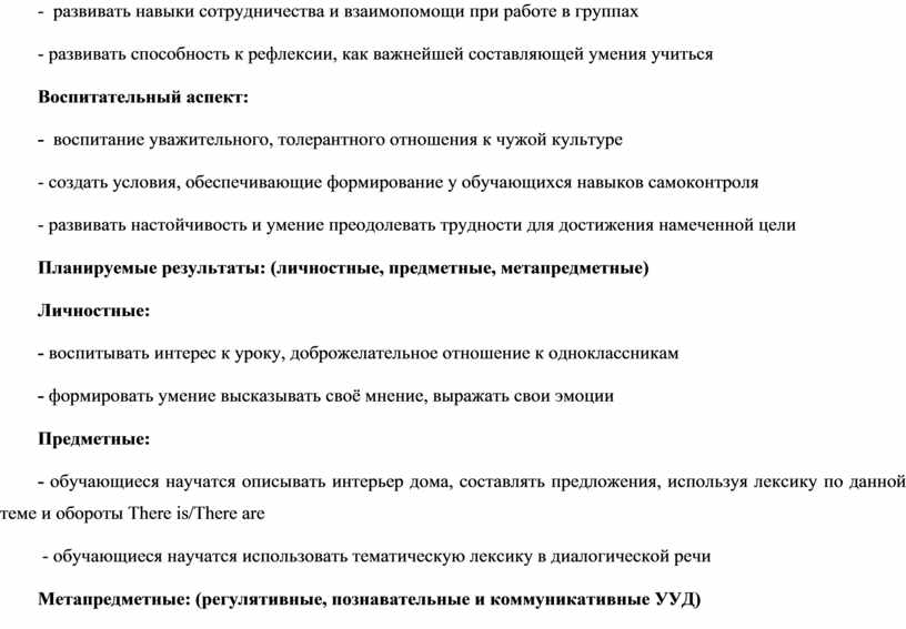 - обучающиеся научатся описывать интерьер дома, составлять предложения, используя лексику по данной теме и обороты There is/There are