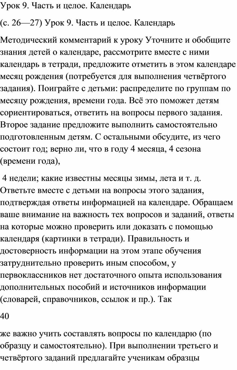 (с. 26—27) Урок 9. Часть и целое. Календарь
