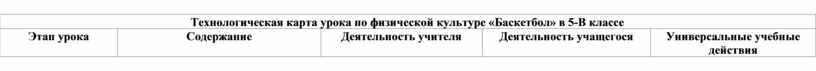 Технологическая карта урока по физической культуре «Баскетбол» в 5-В классе |
