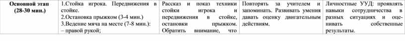 Образовательные: Обучение технике стойки игрока, передвижения в стойке, остановки прыжком, ведения мяча на месте, ловли и передачи мяча двумя руками в парах на месте. Способствовать развитию координационных качеств.