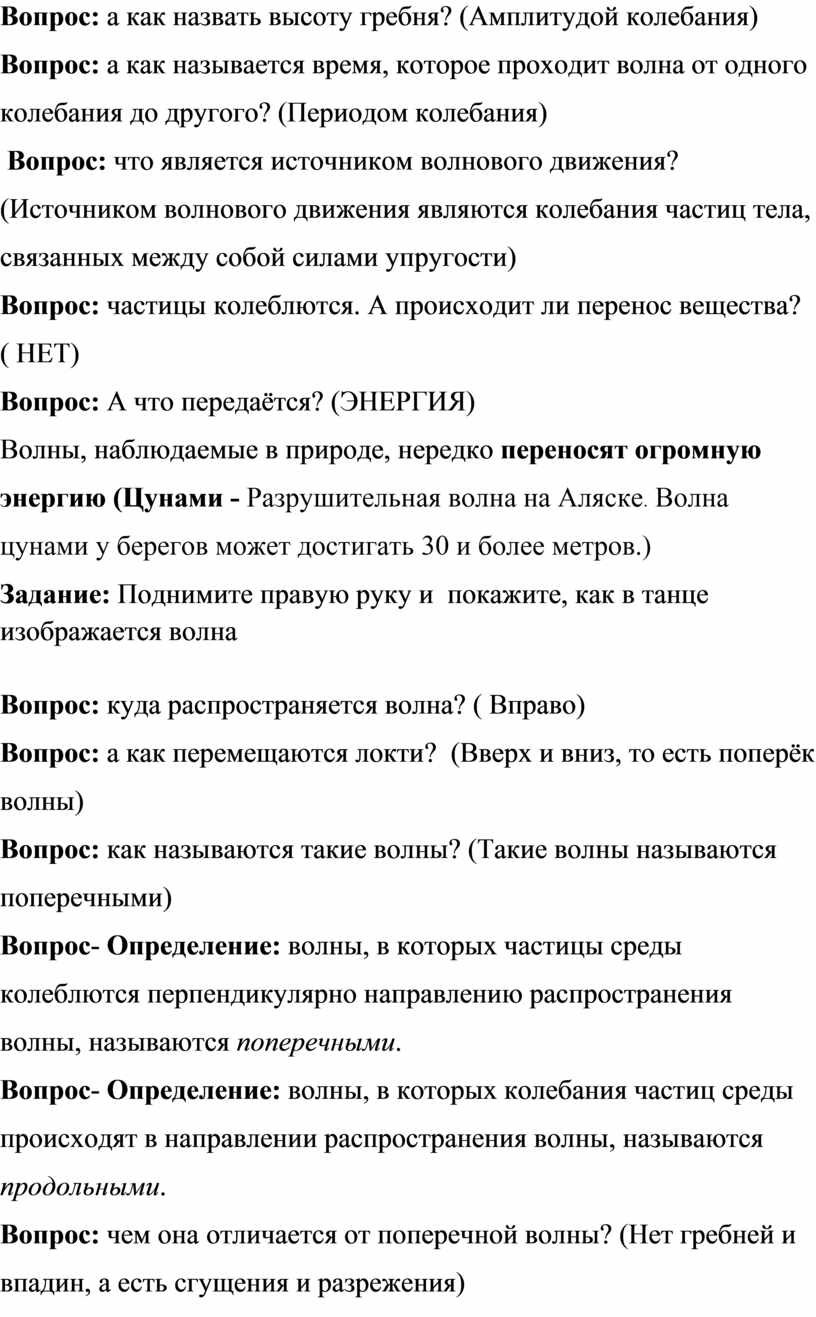 Вопрос: что является источником волнового движения? (Источником волнового движения являются колебания частиц тела, связанных между собой силами упругости)